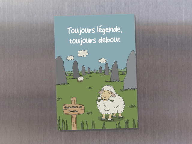 N’hésite pas à offrir ce dessin à un ami qui aime les menhirs, les moutons, la Bretagne, le soleil ou la pluie.